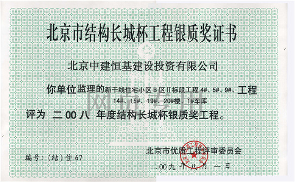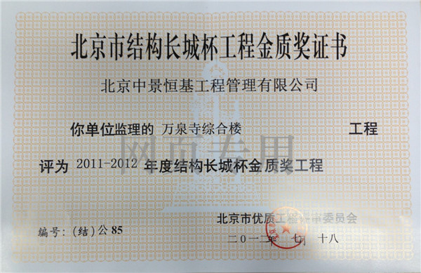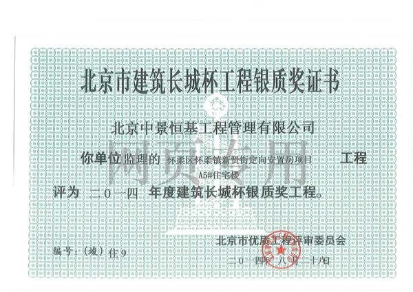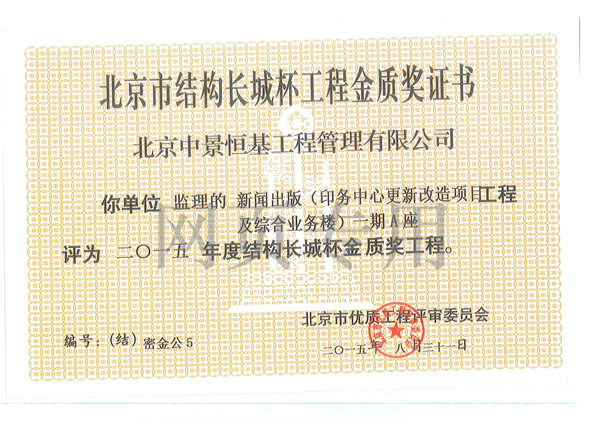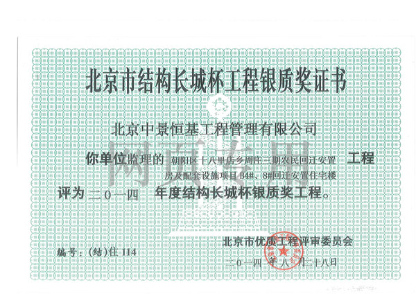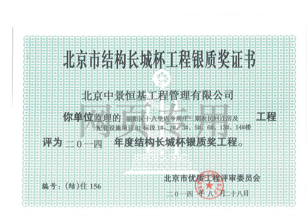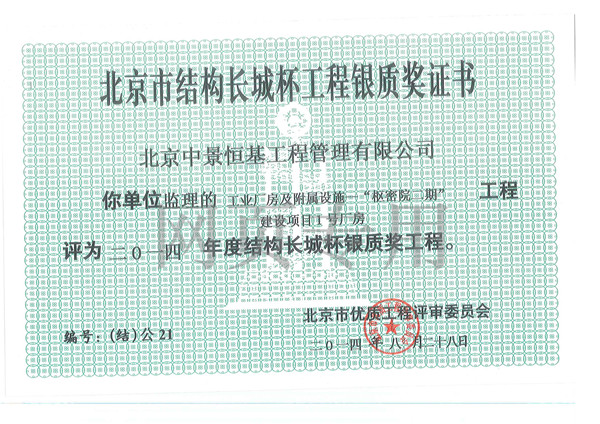 2015年年度結構長城杯銀質...