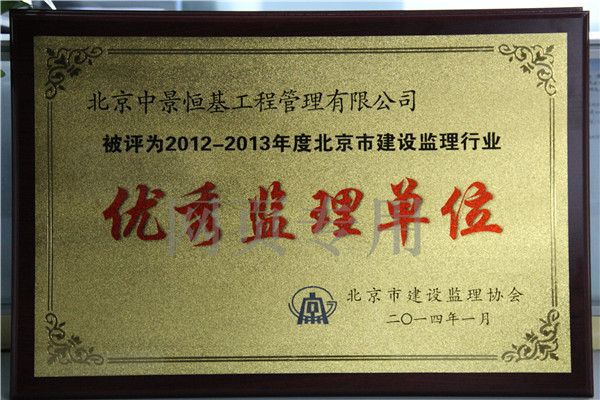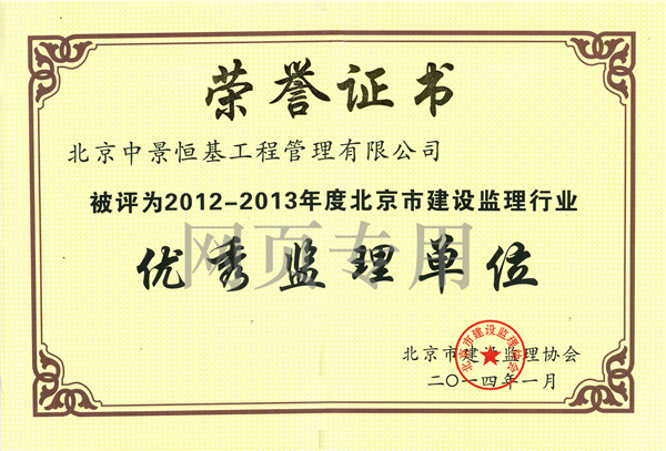 2012-2013年度優秀監理單位證書